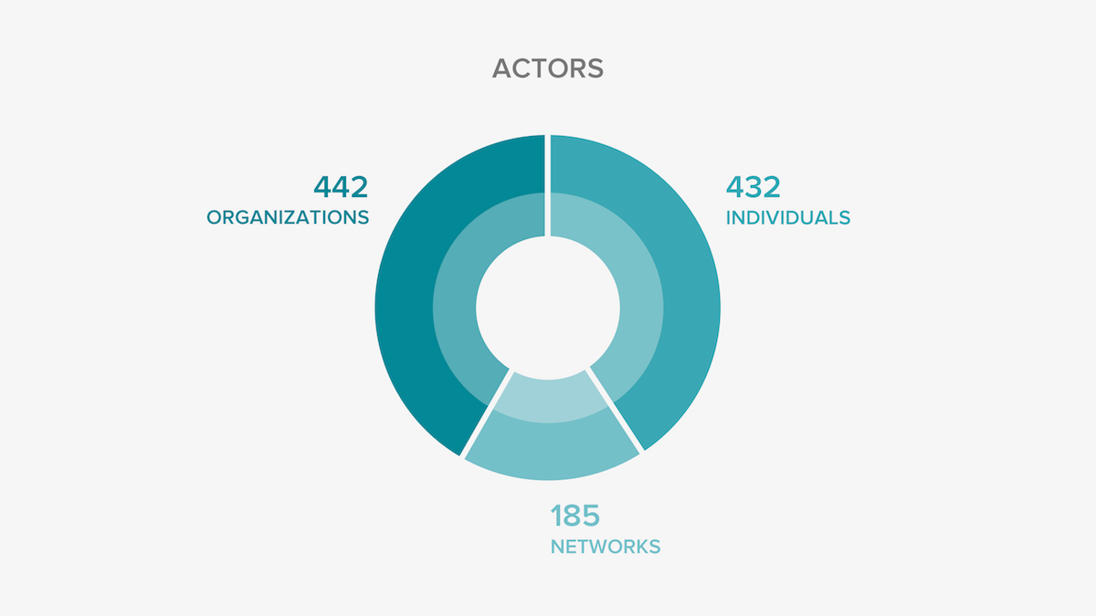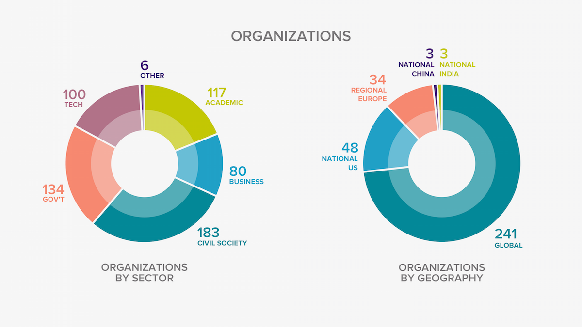 The above figures represent the results of a very preliminary mapping. While we crossed the 1000 number, many actors remain to be added, and many more issues can be probed using the Map. The database is currently open to all, and we invite the Internet community at large—especially but not restricted to those concerned with Internet governance—to become a contributor and add themselves #OnTheMap.