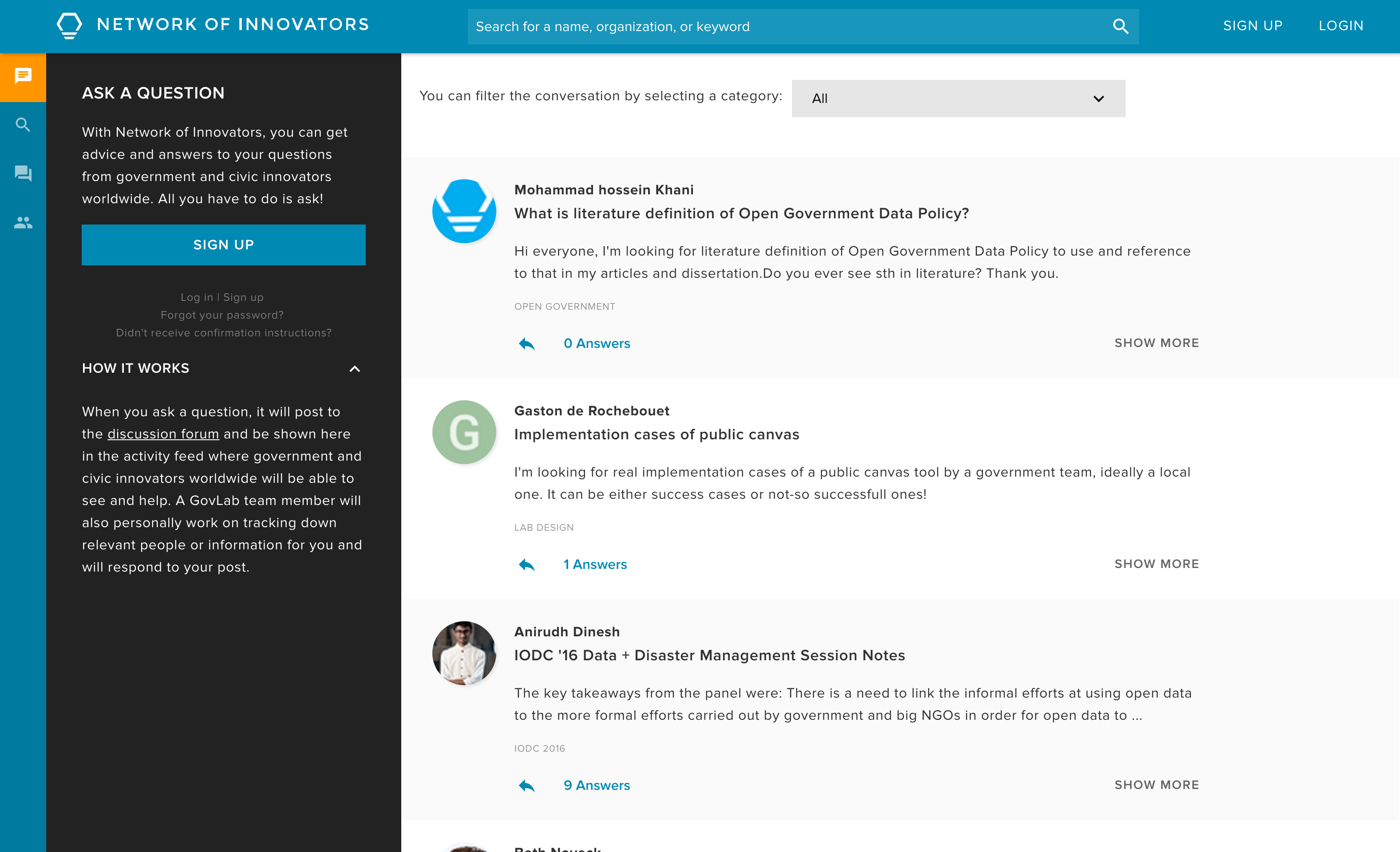 NoI is premised on the belief that traditional titles and academic credentials do not adequately convey the skills and experiences people have and would willingly share. By promoting the exchange of knowledge about more agile, data-driven, open and collaborative approaches to working, NoI aims to enhance how we govern and solve public problems.